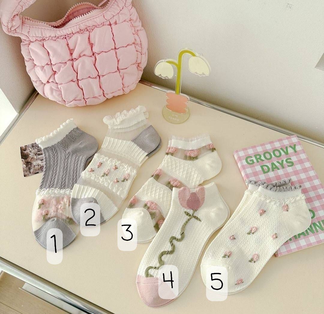 جوراب مچی زنانه نخ پنبه لب ژور گل لاله