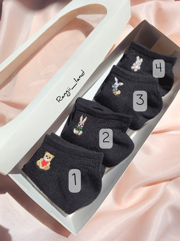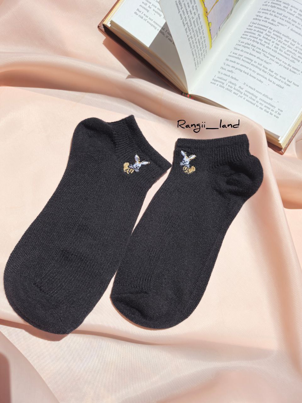 جوراب مچی زنانه نخ پنبه گلدوزی مینیمال خرگوش