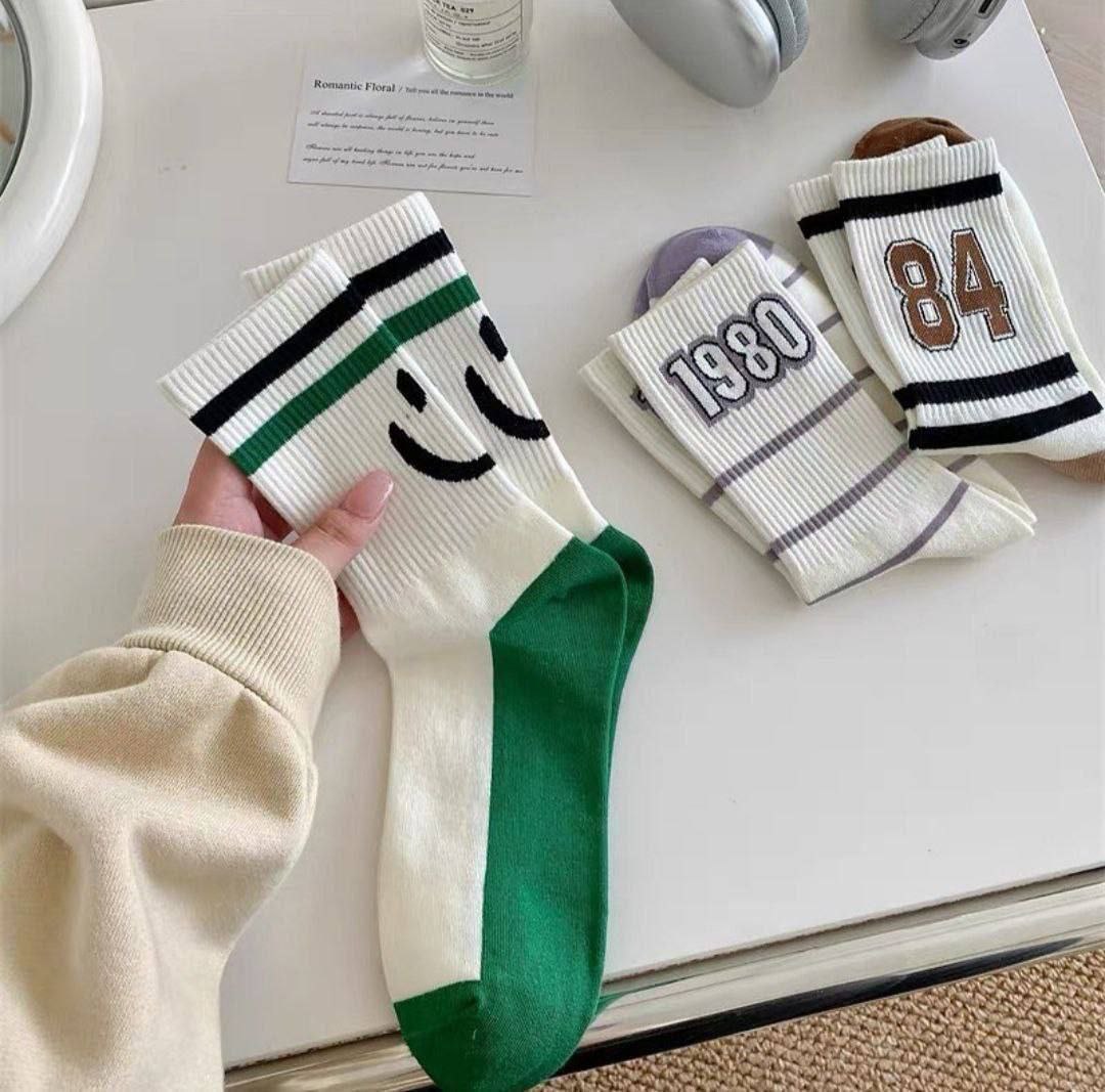 جوراب ساق دار اسپرت نخ پنبه طرح لبخند