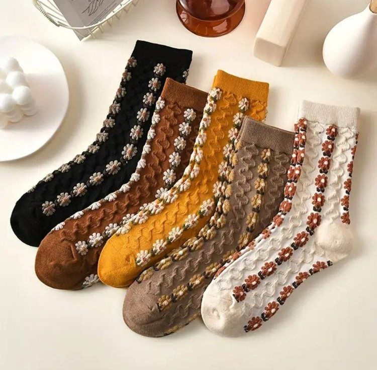 جوراب ساق دار زنانه نخ پنبه بابونه