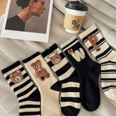 جوراب ساق دار زنانه نخ پنبه تدی رینگی سفیدمشکی