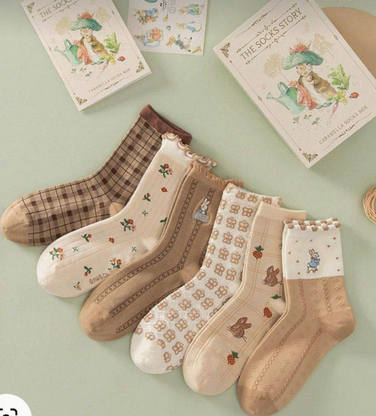 جوراب ساق دار زنانه نخ پنبه پیترربیت قهوه ای